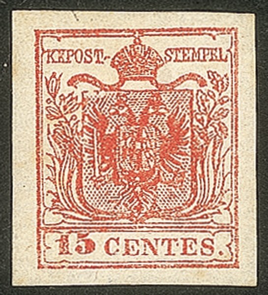 Antichi Stati Italiani - Lombardo Veneto - 1850 - 15 cent rosso (6) III tipo carta a mano