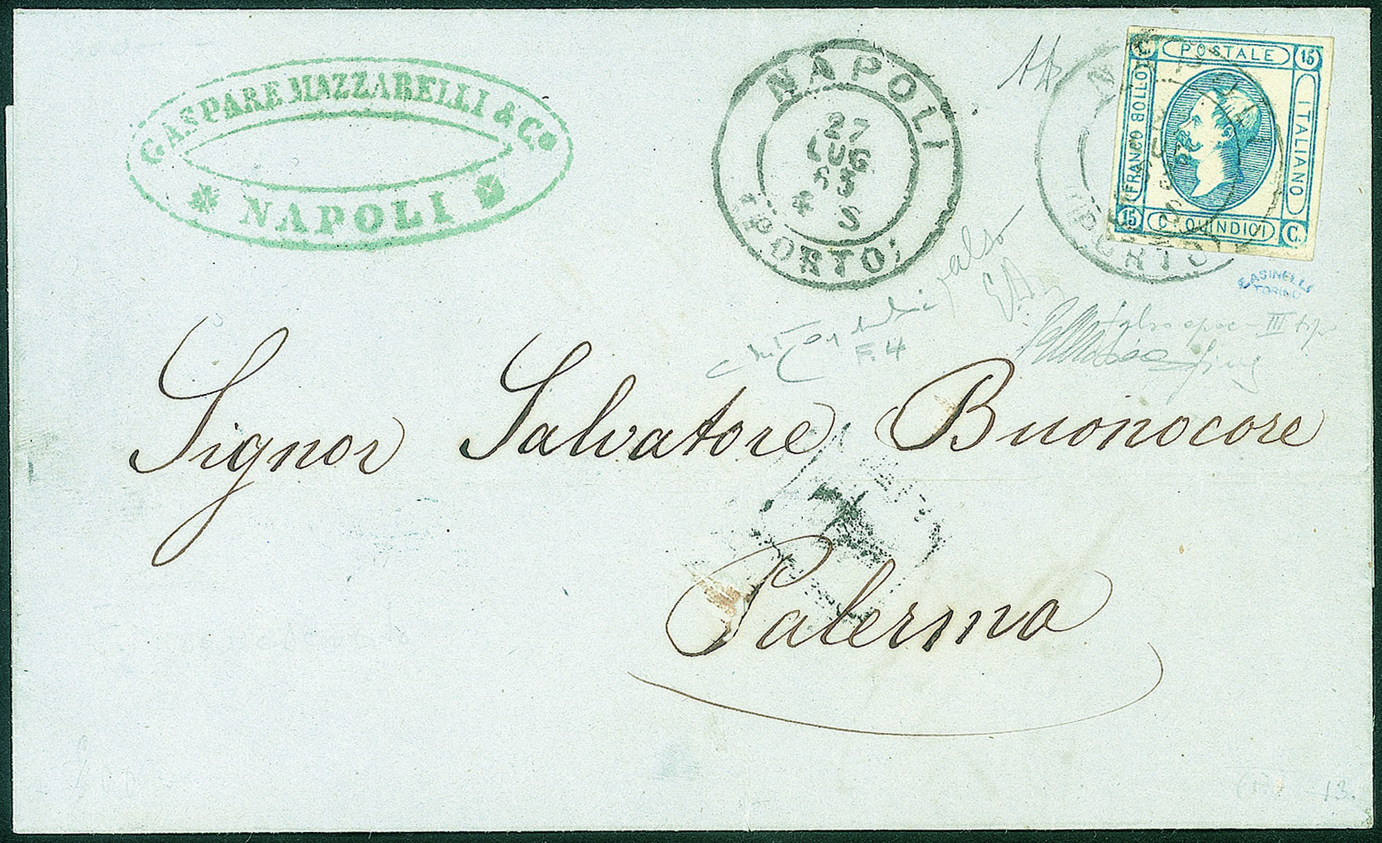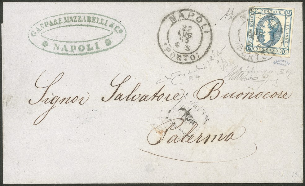Regno - Vittorio Emanuele II - Falso di Napoli - Splendida lettera affrancata con 15 cent Litoghrafico (F4)