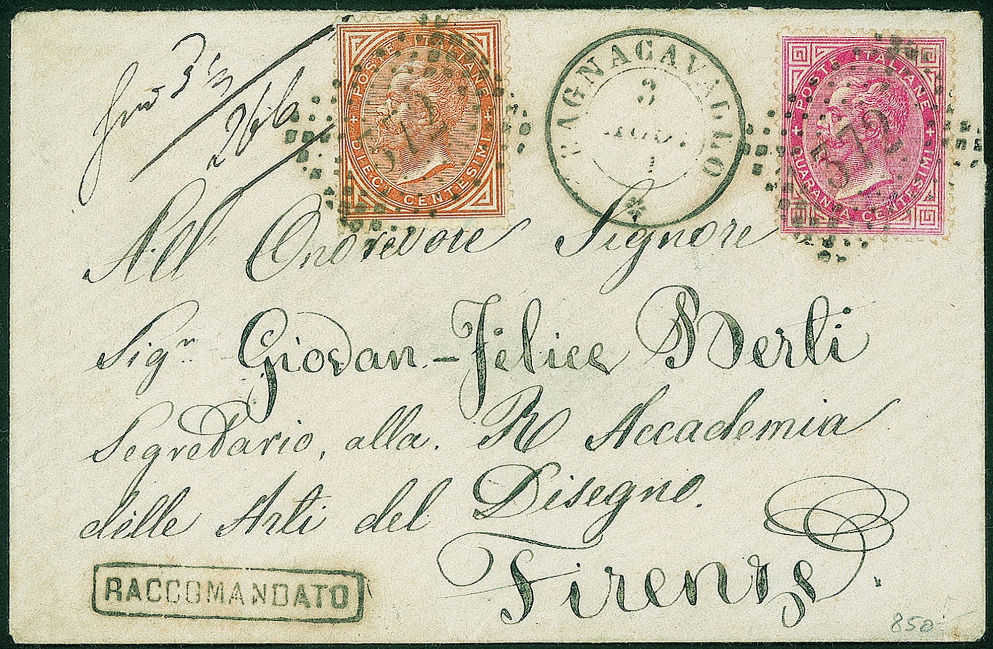 Regno - Vittorio Emanuele II - Bustina raccomandata da Bagnacavallo 3.8.71