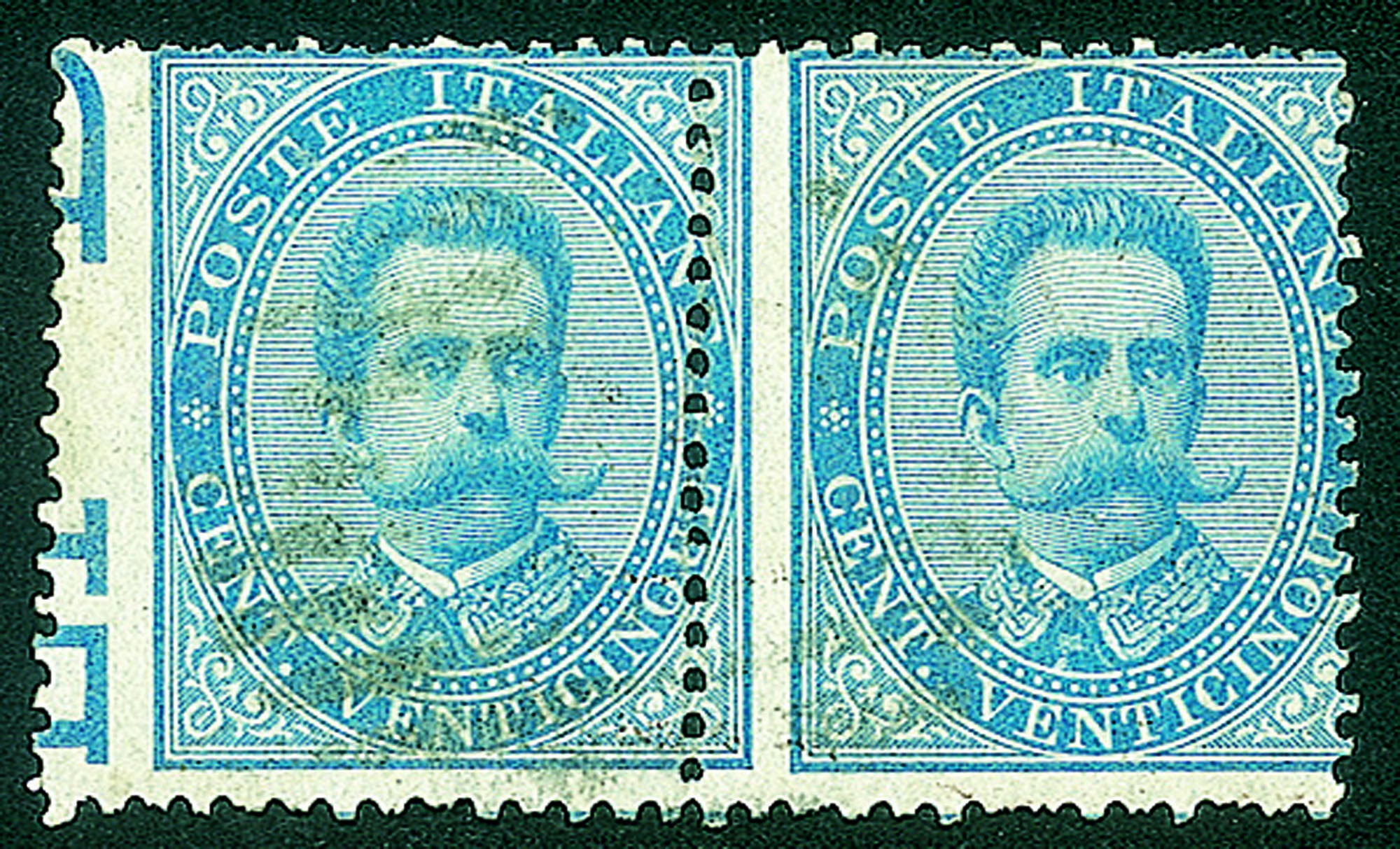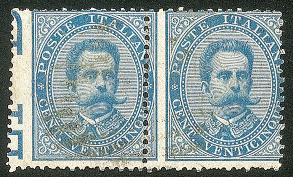 Regno - Umberto I - Coppia orizzontale del 25 cent (40h/ha)