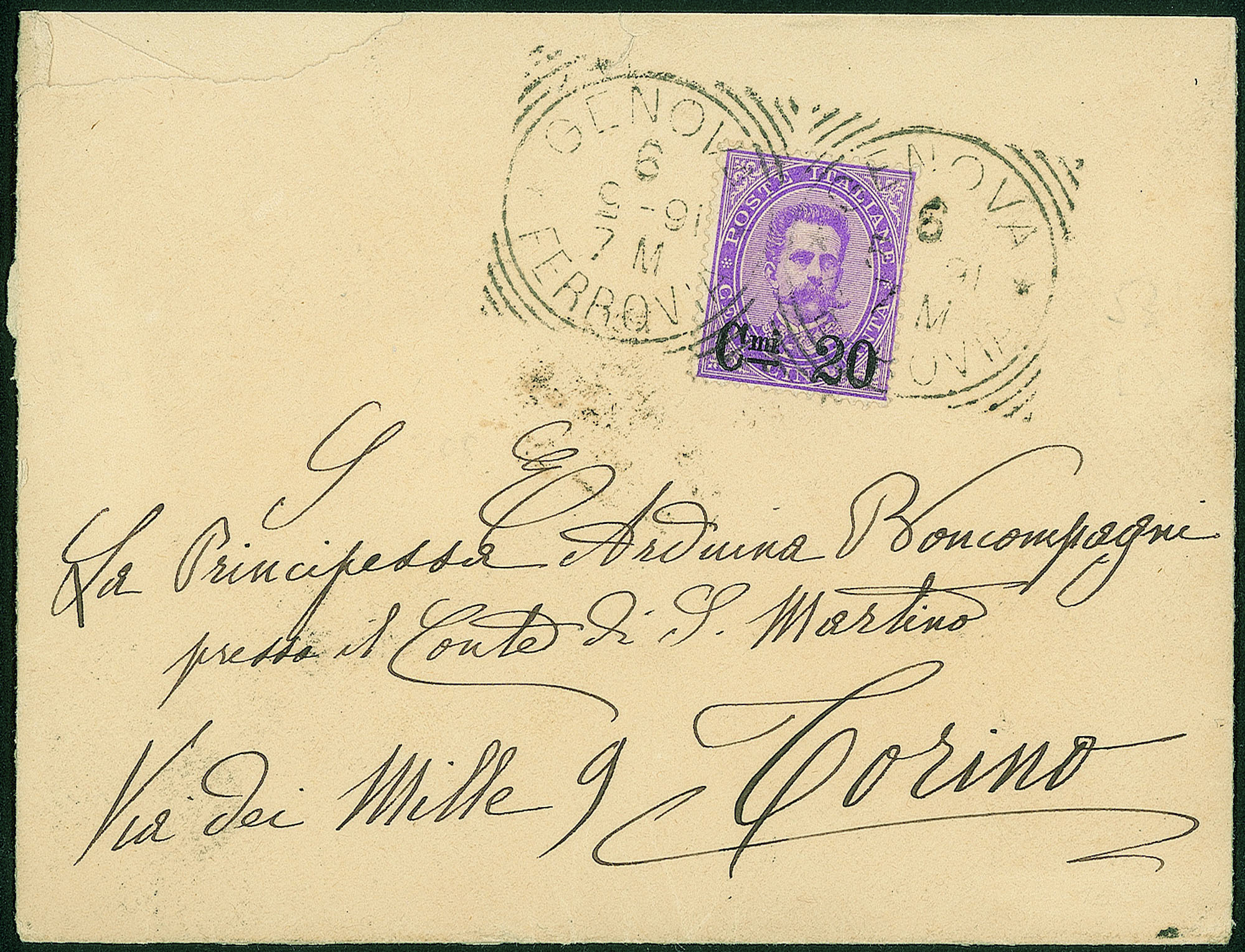Regno - Umberto I - Busta da Genova 6.9.91