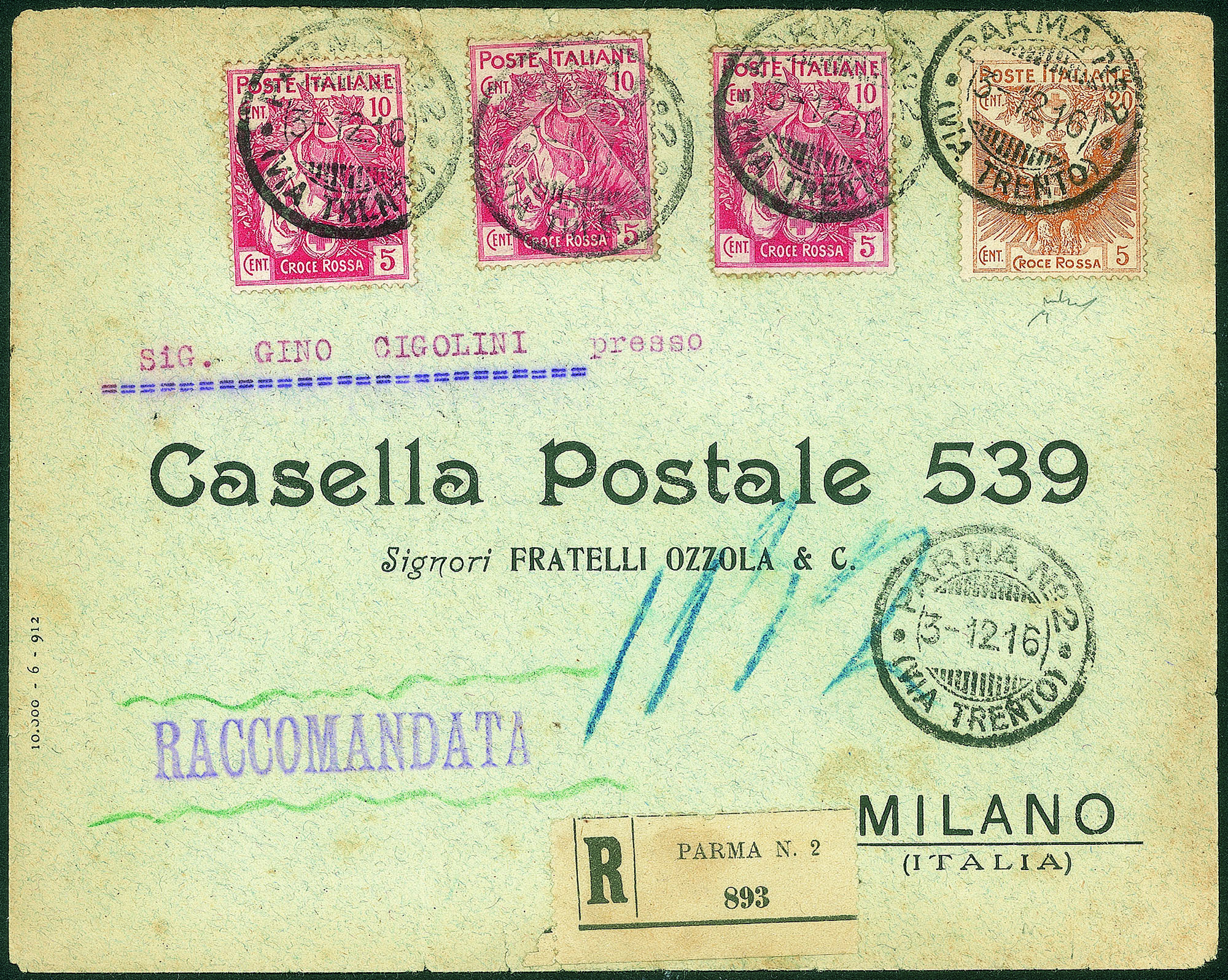 Su raccomandata da Parma a Milano del 3.12.16 - in tariffa - Chiavarello