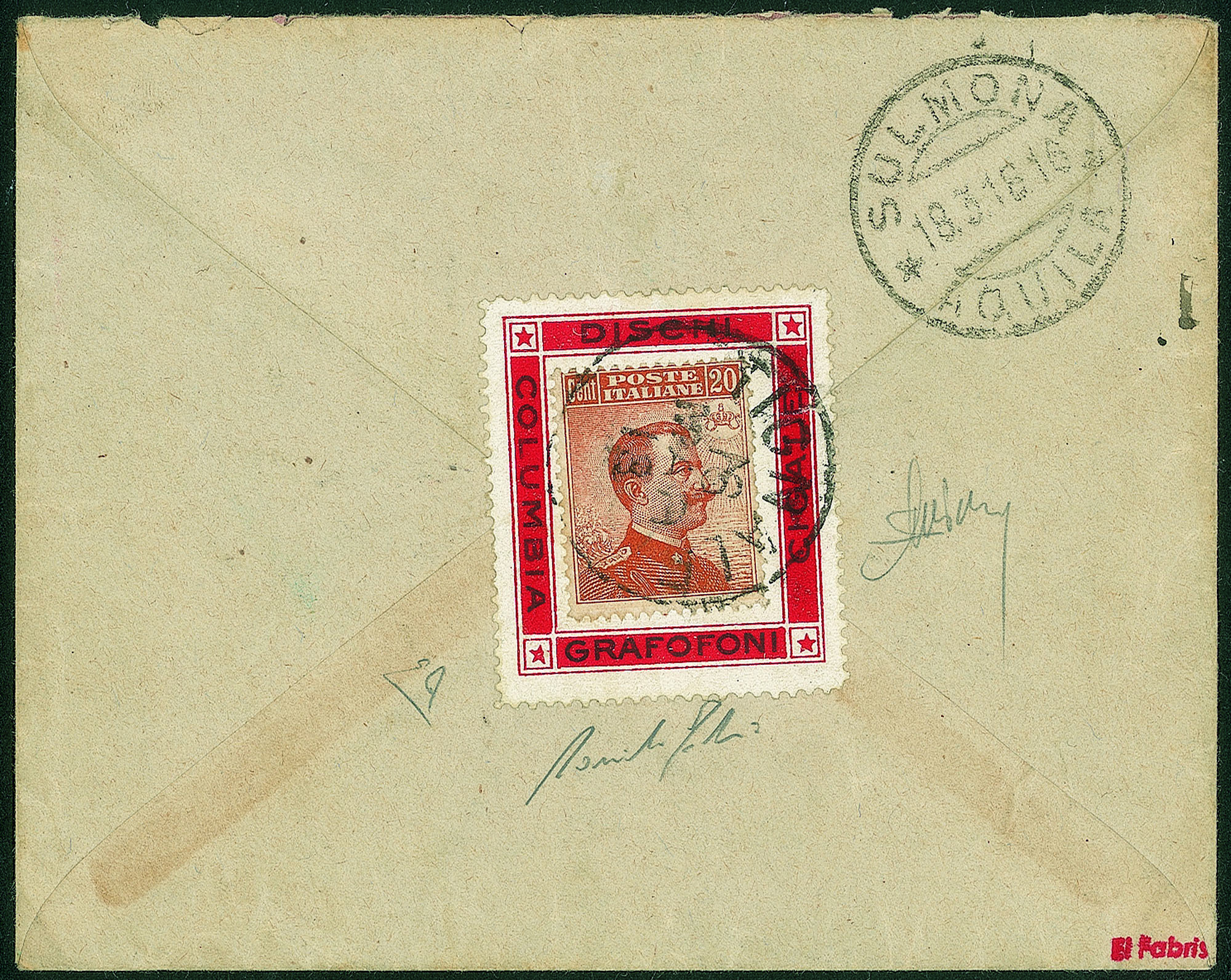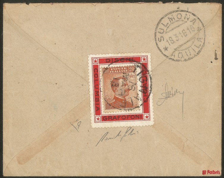 Regno - Vittorio Emanuele III - Busta con al retro 20 cent (109)