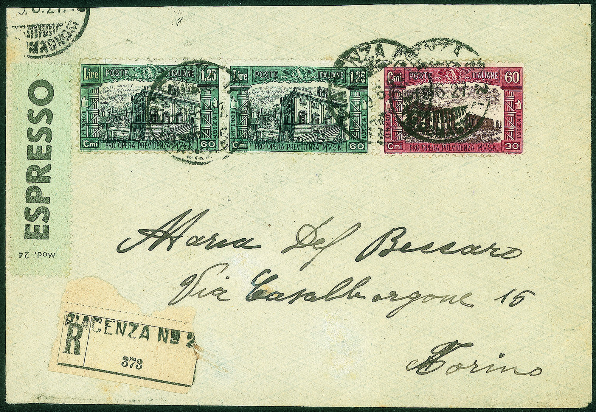 Su raccomandata espresso da Piacenza a Torino del 9.6.27 - molto bella