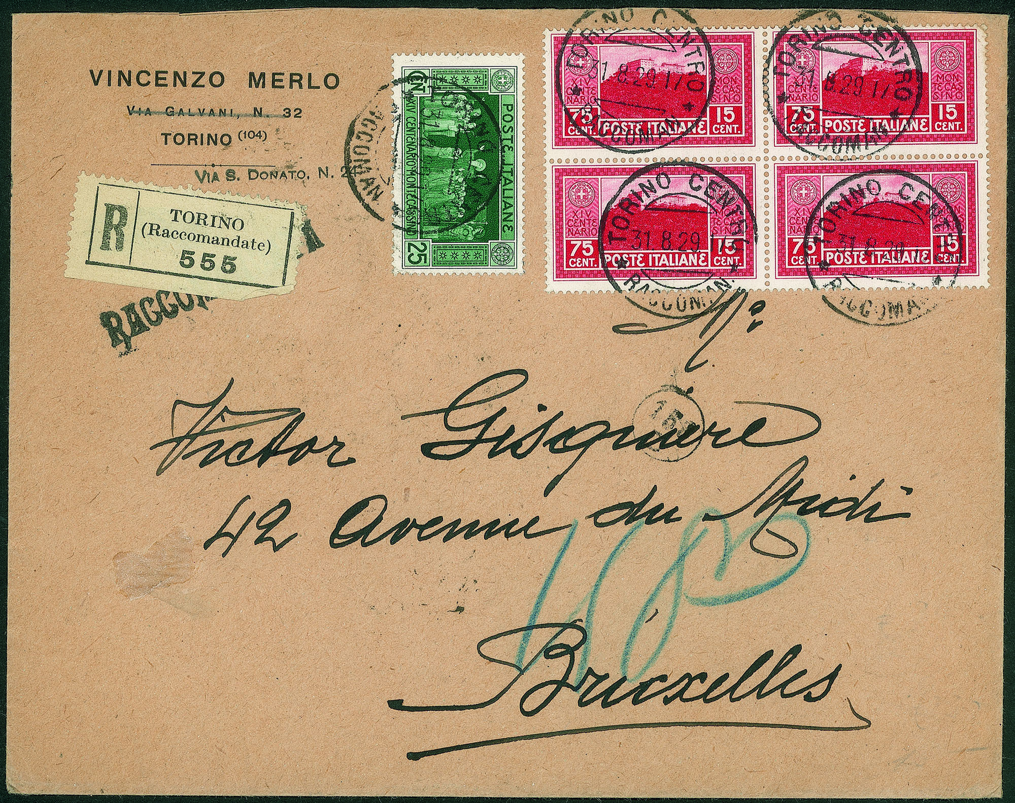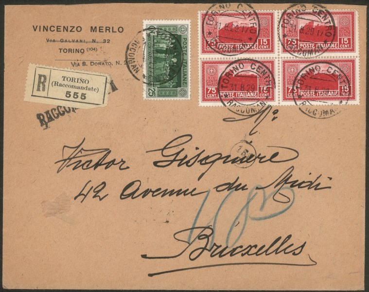 Su raccomandata da Torino a Bruxelles del 31.8.29 - molto bella