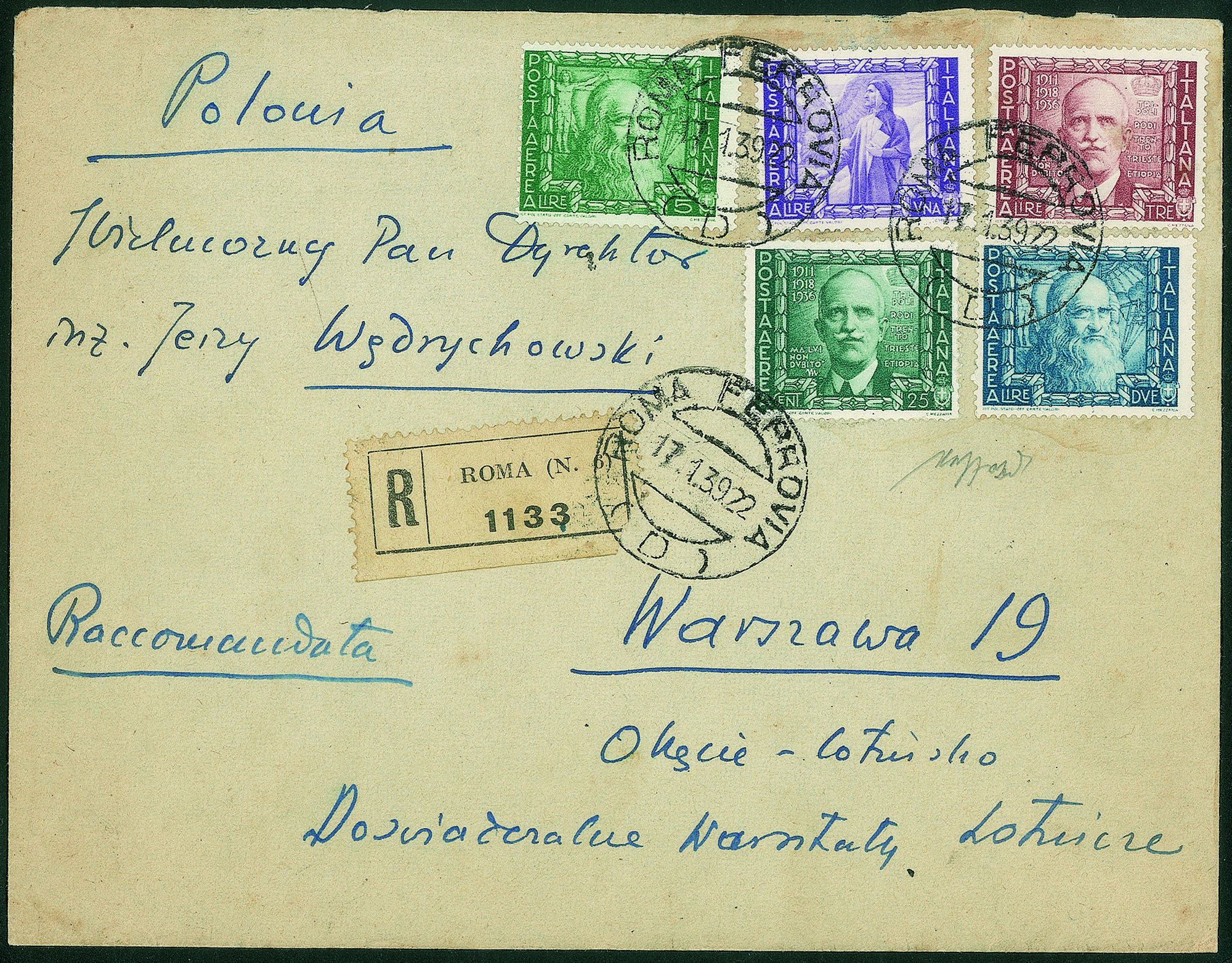 Da Roma a Varsavia (Polonia) del 17.1.39 - Caffaz