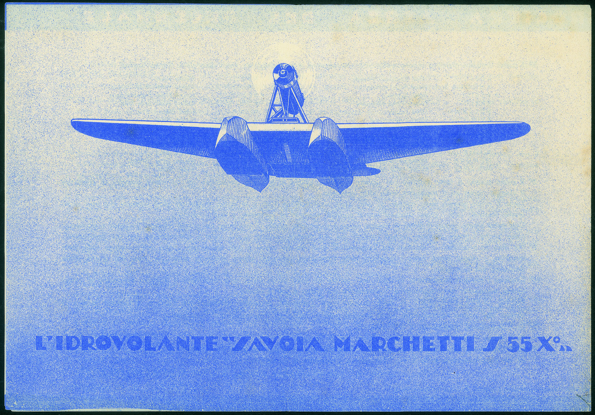 Raro volantino del Concorso a premi Perugina (Longhi 3007ga) pieghevole a 4 facciate con Mappa della Crociera sulla copertina all'interno ampio regolamento e al verso immagine dell'Idrovolante Savoia Marchetti S55X - cert. oro Fabris