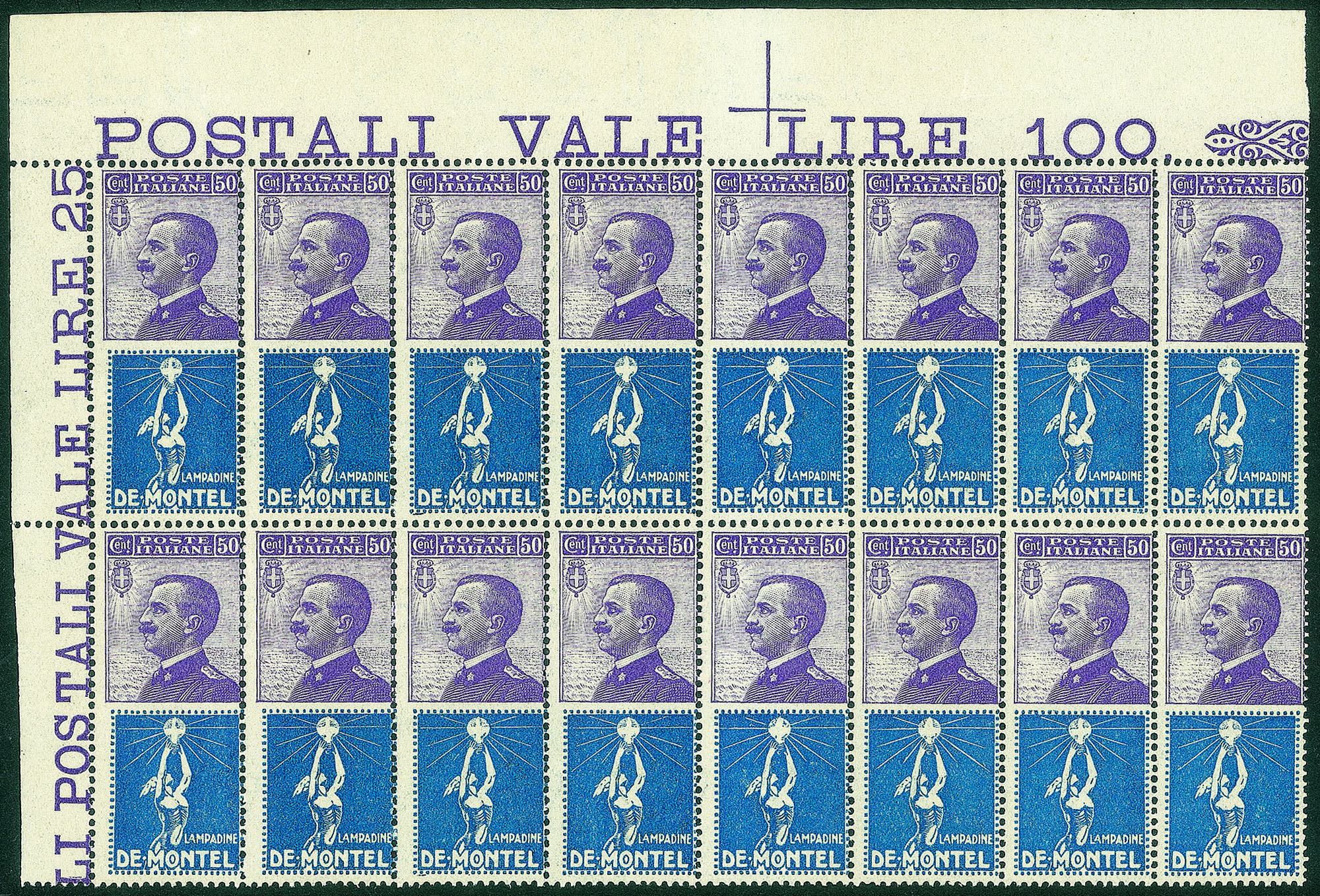 Regno - Vittorio Emanuele III - Servizi - 1925 - Pubblicitari - Blocco angolare di 16 esemplari del 50 cent De Montel (12)