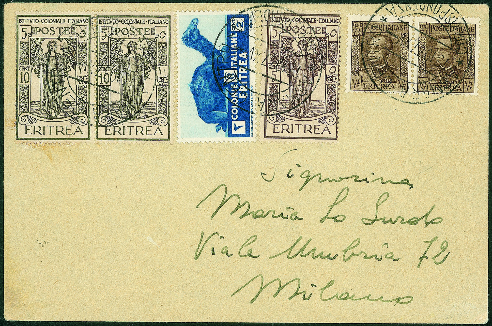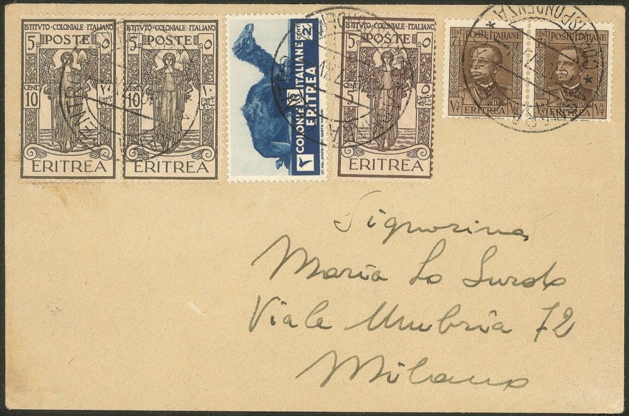 + complementari (coppia 195 + 203) su bustina da Asmara a Milano del 15.10.37 - molto bella