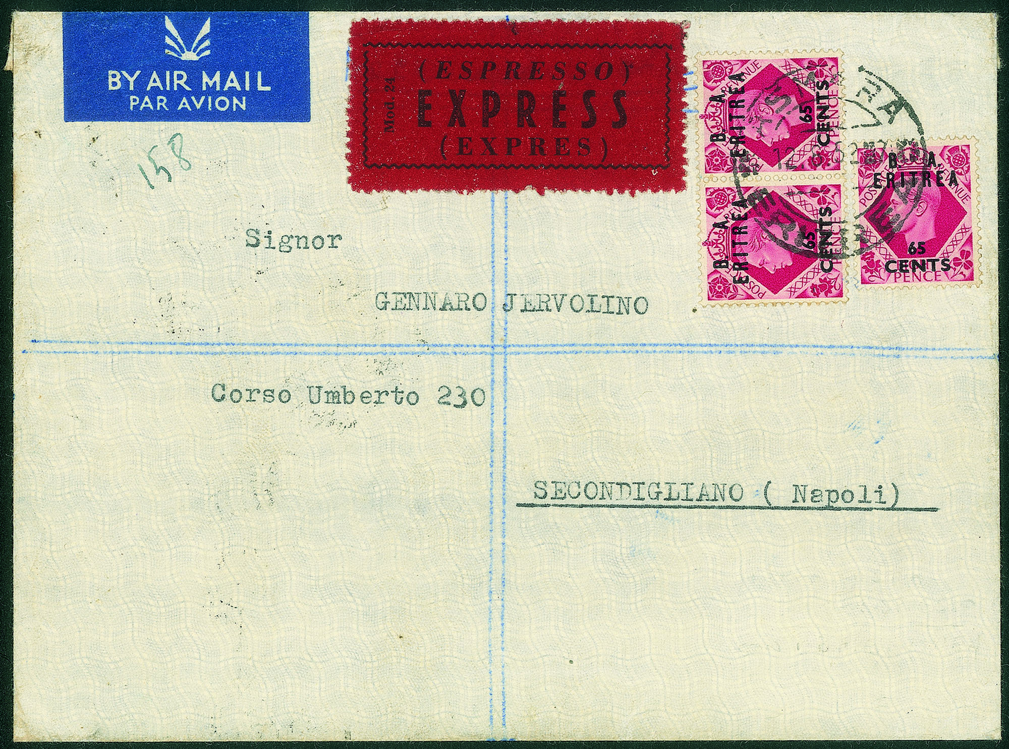 Su aerogramma raccomandato da Asmara a Secondigliano del 12.8.52 - in tariffa