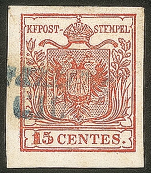 6.1850 primo mese d'uso su 15 cent primo tipo prima tiratura (3a) - cert. E. Diena
