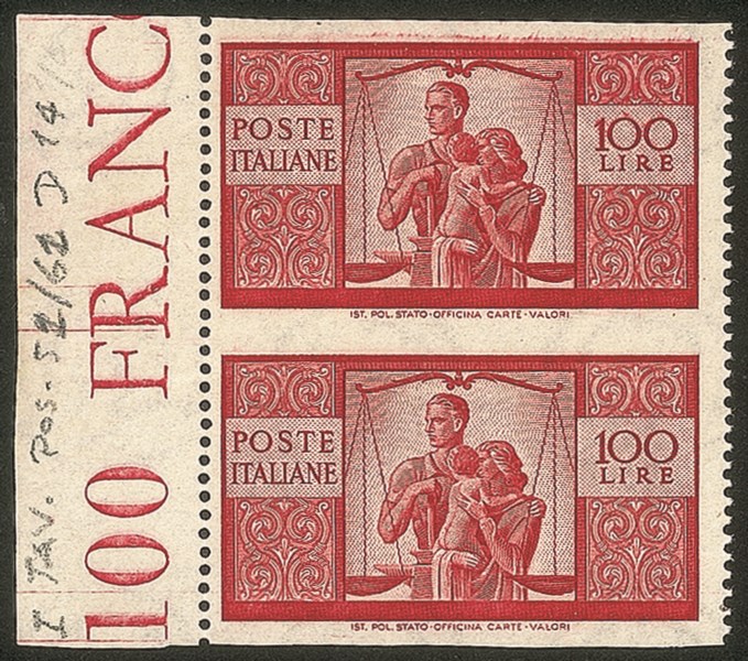 Italia - Repubblica - 1946 - Coppia bordo di foglio del 100 lire Democratica (565ai)