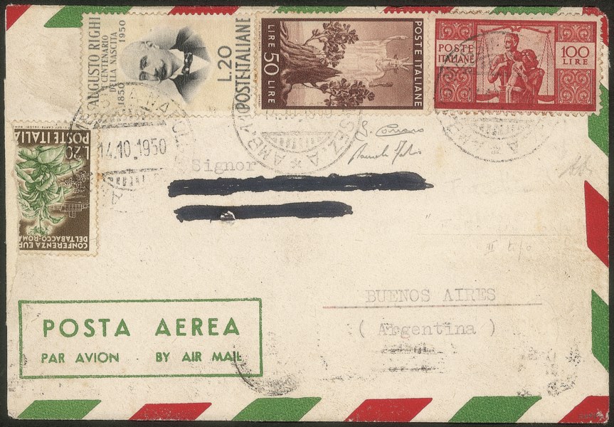 Italia - Repubblica - Falsi di Bueons Aires - Falso di Buenos Aires - II tiratura - busta affrancata con 100 lire Democratica (F565A)