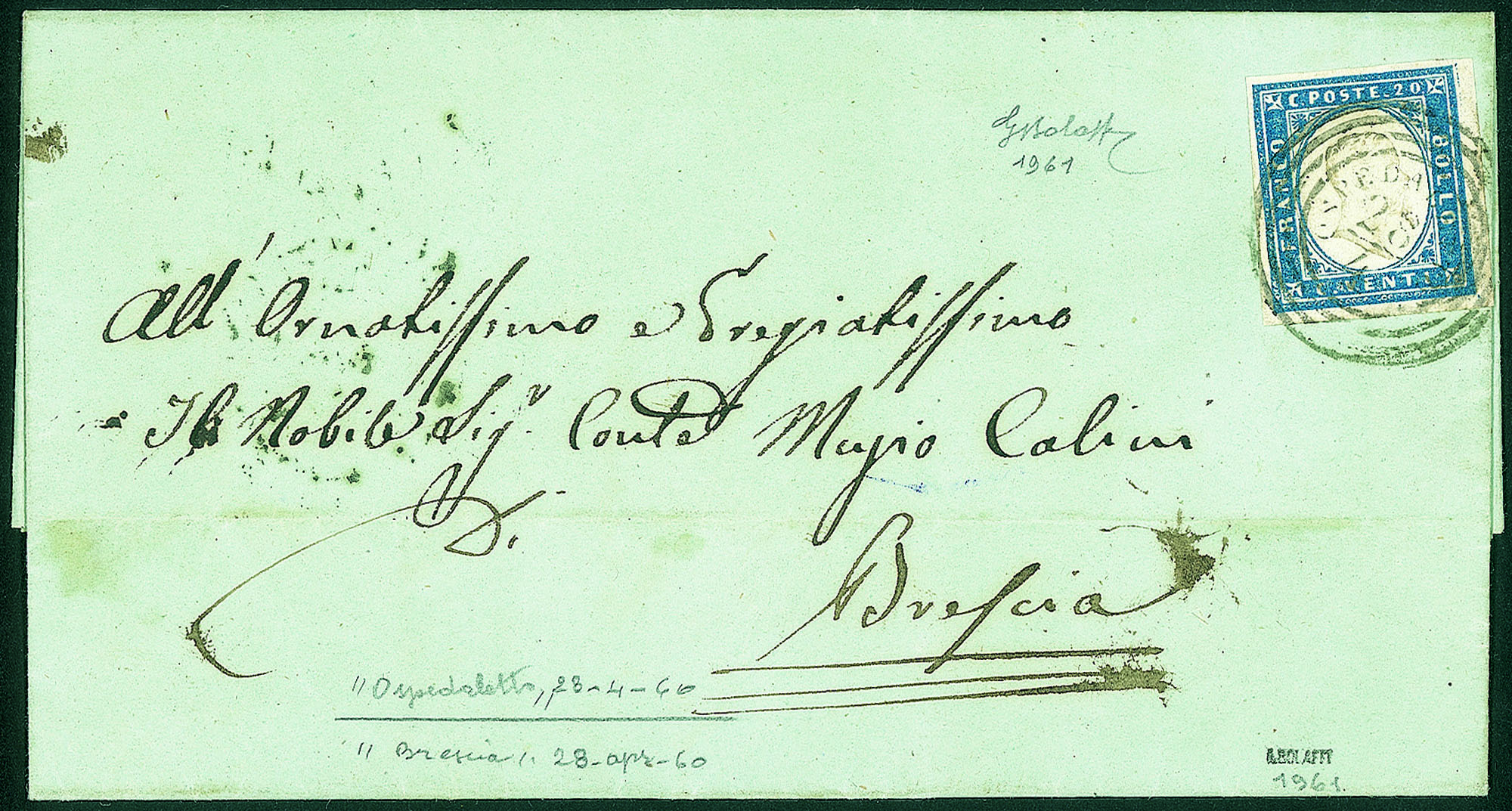 Lettera del 28.4.1860 per Brescia affrancata con 20 cent IV di Sardegna (15)