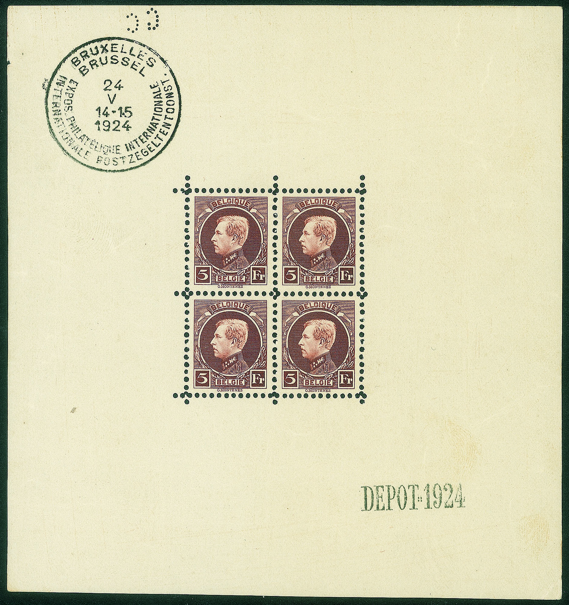 Europa e Oltremare - Belgio - 1924 - Foglietto Esposizione Filatelica di Bruxelles (B1)