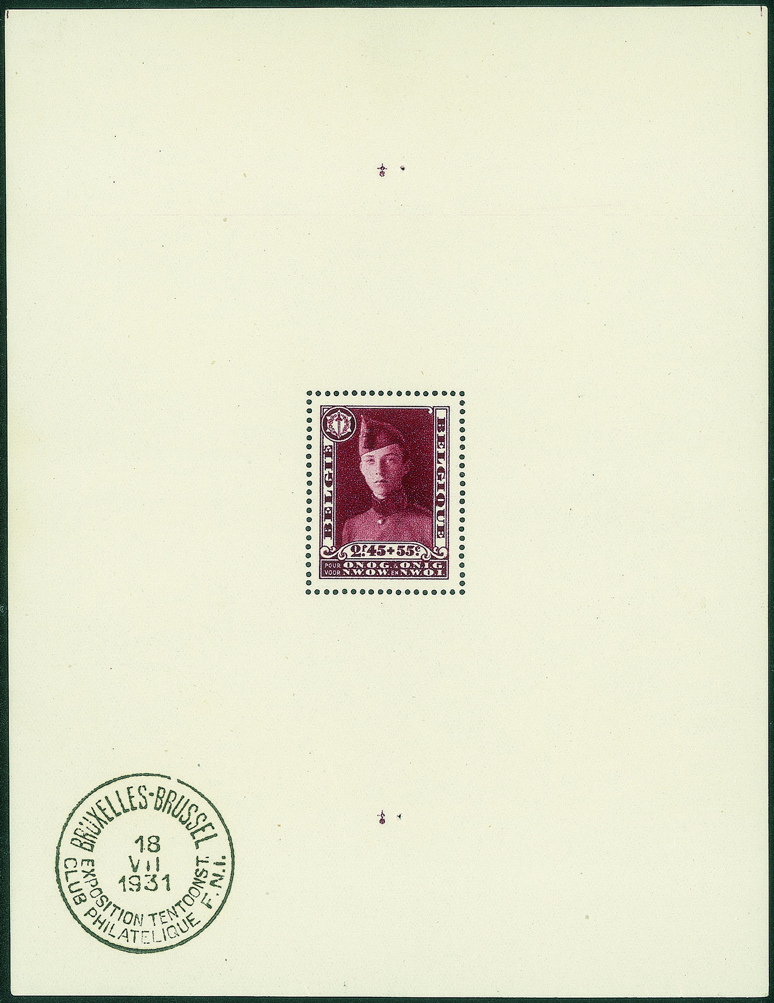 Europa e Oltremare - Belgio - 1931 - Foglietto Esposizione Filatelica dell'Associazione Invalidi di Guerra (BF3)