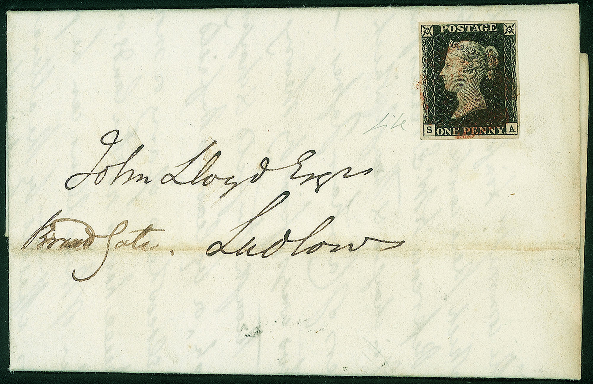 Tavola 1b con lettere SA annullato con croce maltese rossa su lettera per Ludlow - molto bella