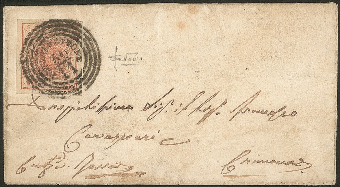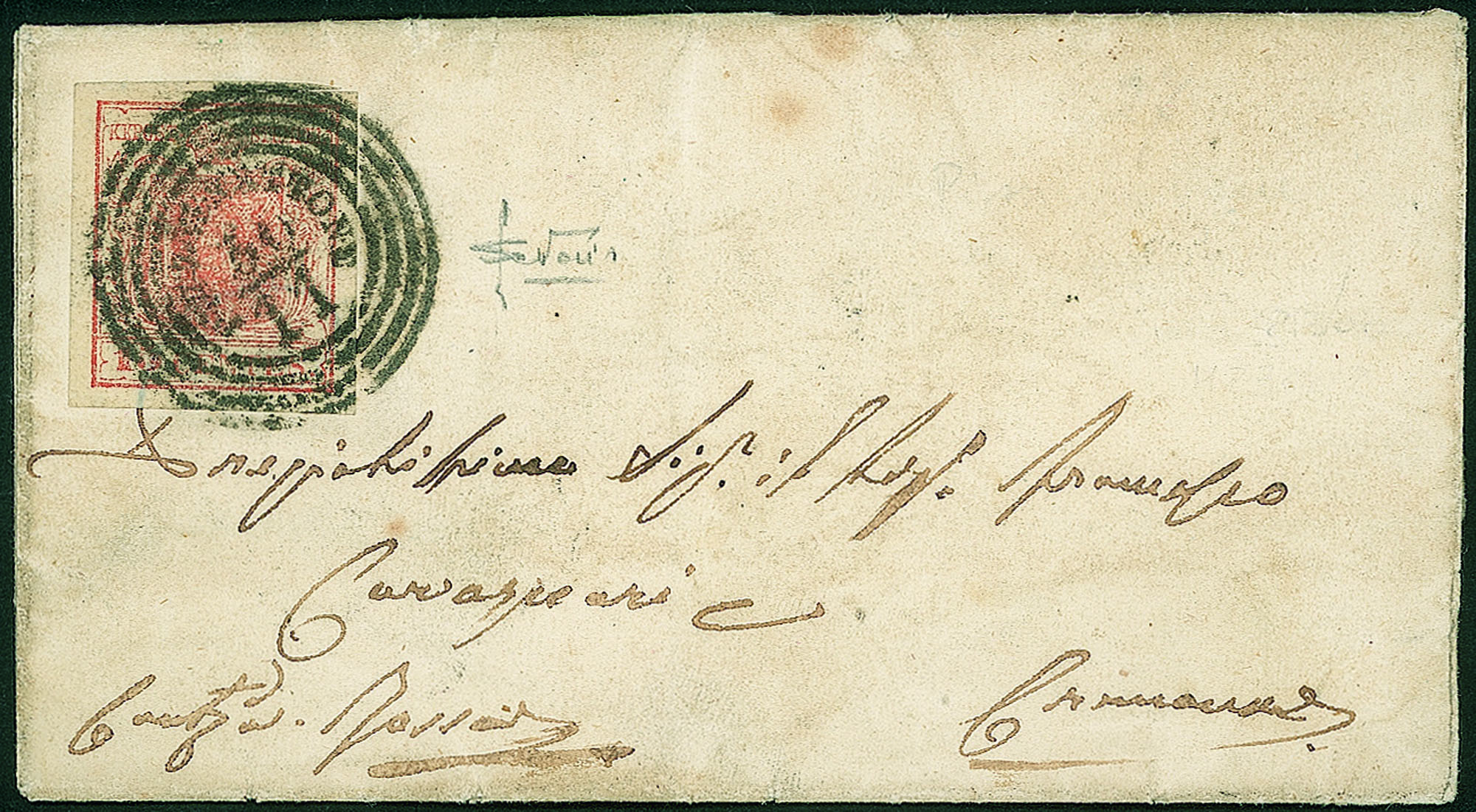 Lettera del 30.11.1853 per Cremona affrancata con 15 cent secondo tipo carta a mano (5c)