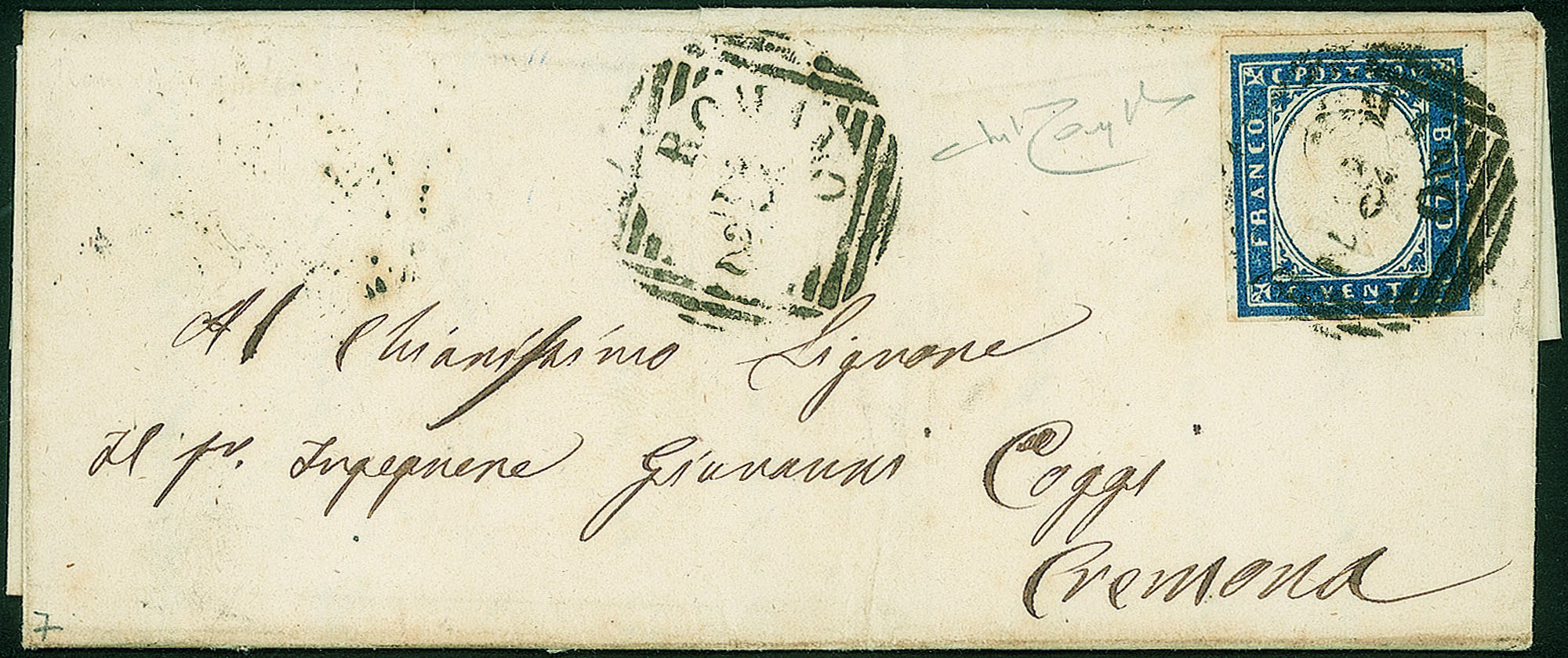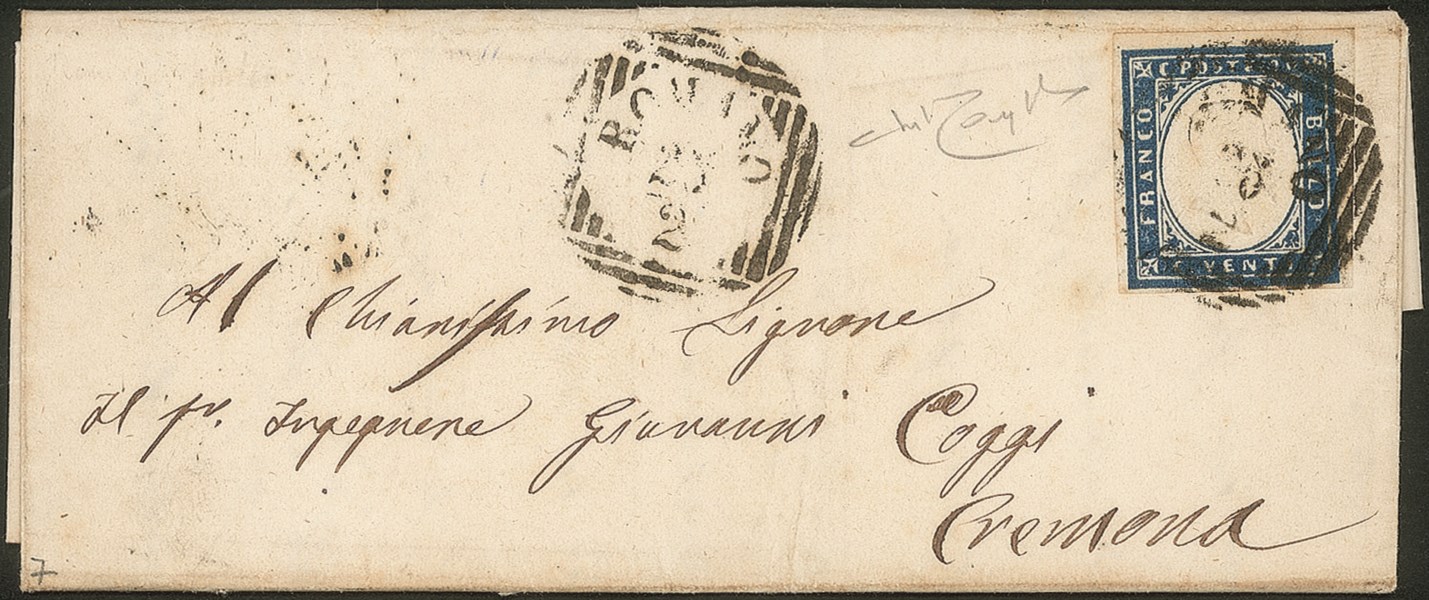 Lettera del 22.6.1860 per Cremona affrancata con 20 cent IV di Sardegna (15B)