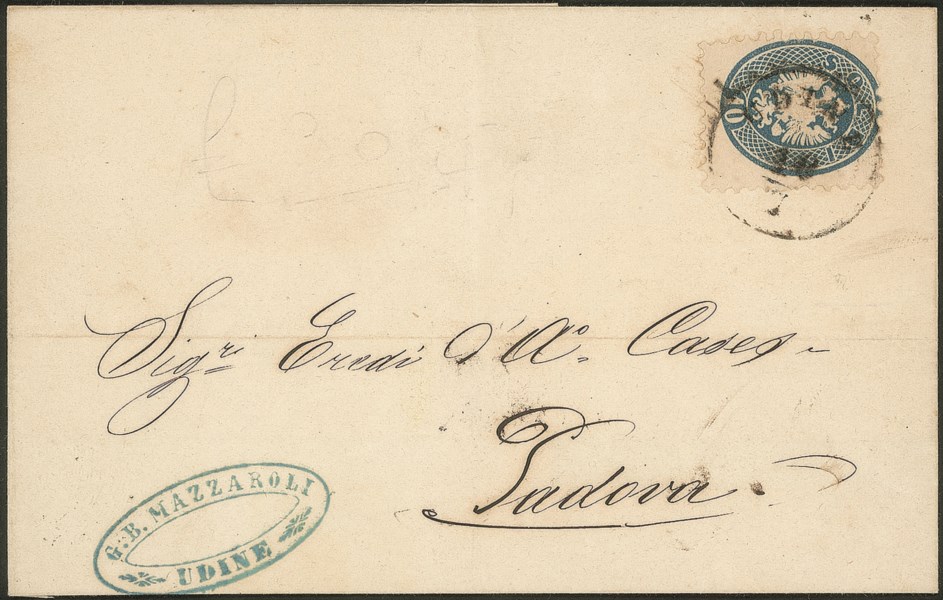 Lettera per Padova affrancata con 10 soldi dent. 9 1/2 (44)