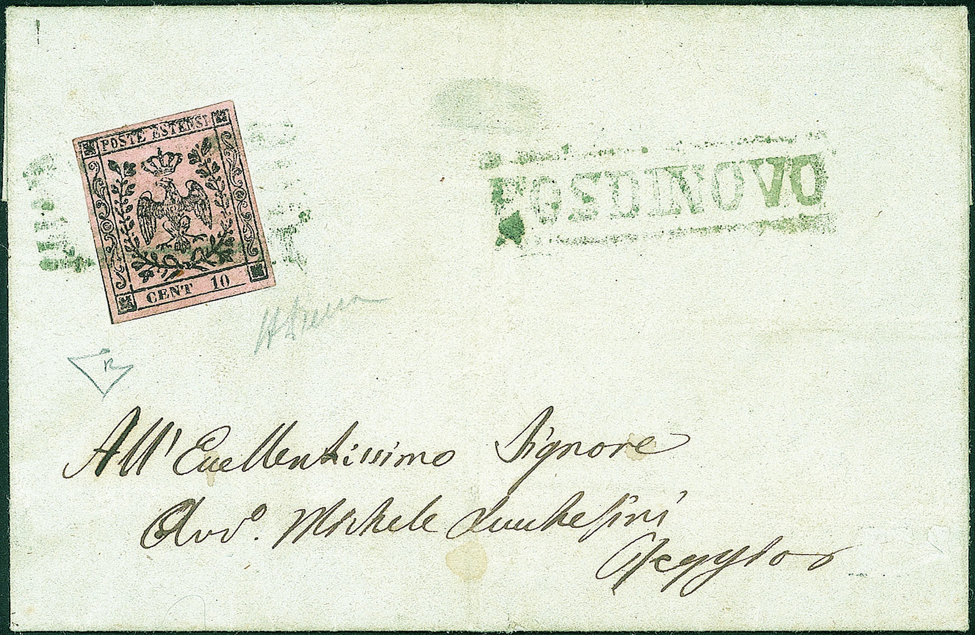 Antichi Stati Italiani - Modena - Fresca lettera da Fosdinovo affrancata con 10 cent (2b)