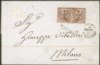 Affrancata con coppia bene marginata del 10 cent con il primo es. con errore N coricata (9i/9) - annullo Posta Lettere Reggio in d.c. con stemma al centro - rarità - cert. A. Diena + E. Diena