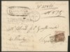 Affrancata al recto con 40 cent. gov. prov. isolato (Sass. 17c) e al verso 5 cent. gov. prov., lacerato in apertura (Sass. 12). Il 40 cent., di rara bellezza, isolato è quotato € 55.000. Cert. Manzoni