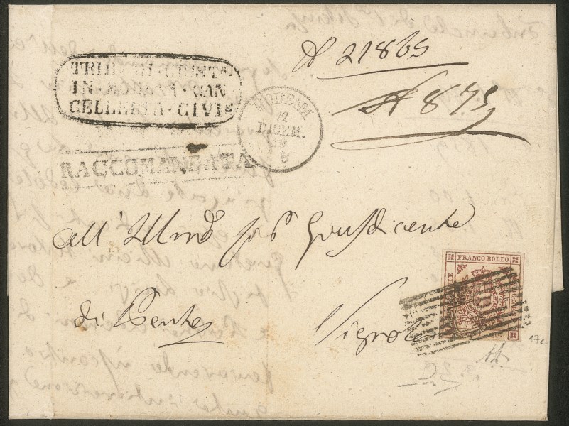 Antichi Stati Italiani - Modena - Governo Provvisorio - Lettera raccomandata spedita da Modena a Vignola