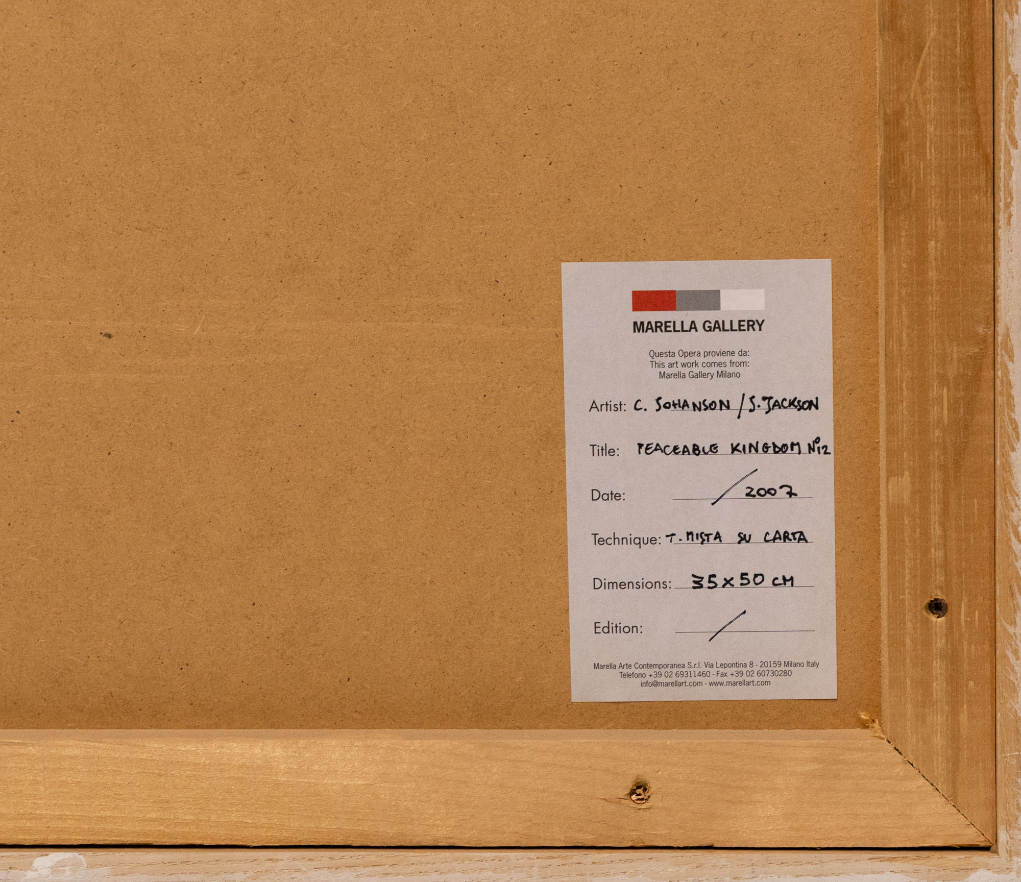 Marella Gallery, Milano (etichetta al retro)